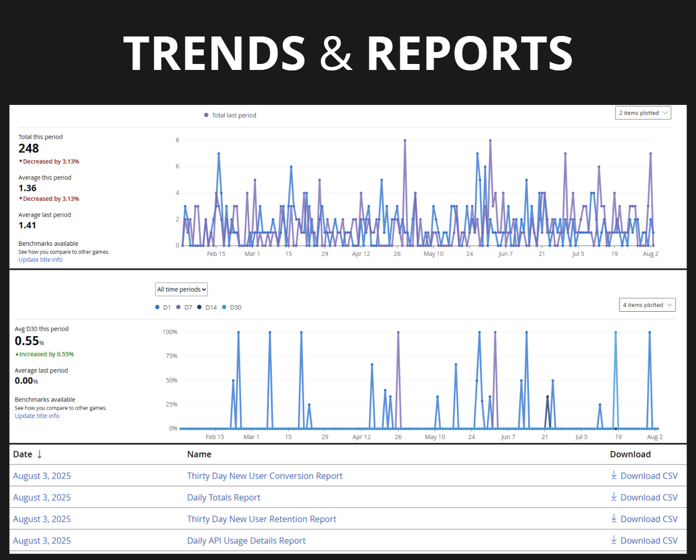 We can push updates, cloud script, send news and manage user accounts & virtual economies all without updates.